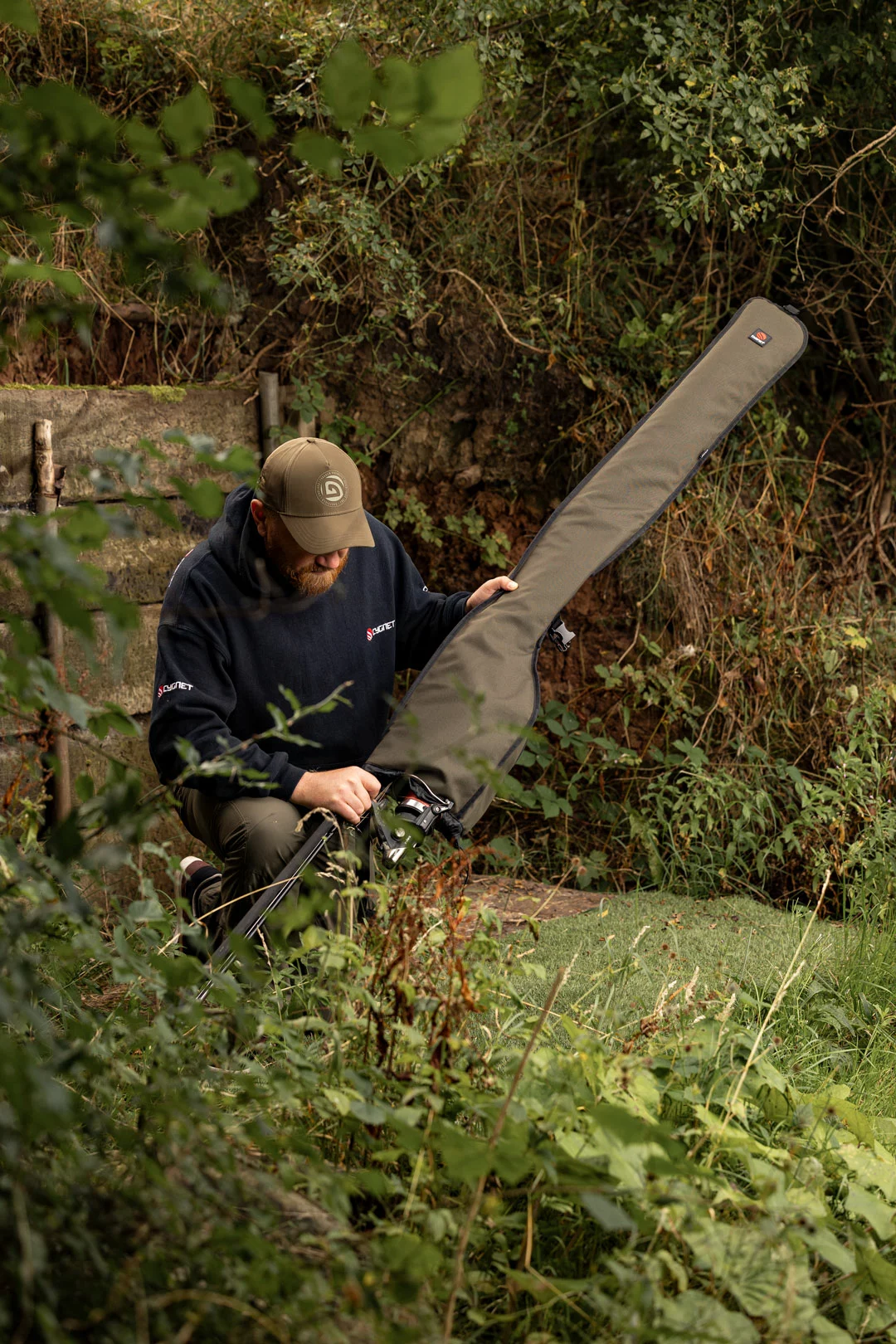 Een mooie en praktische foudraal voor het meenemen van je hengel. De Cygnet Single Sleeve is gemaakt van slijtvast, waterbestendig materiaal en afgewerkt met stevige ritsen. Gemakkelijk en comfortabel mee te nemen. Je big pit uitrusting wordt optimaal beschermd door de gevoerde sleeve. De groene kleur geeft het een nette uitstraling en zorgt ervoor dat je niet te veel opvalt aan de waterkant.
