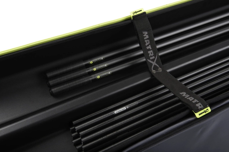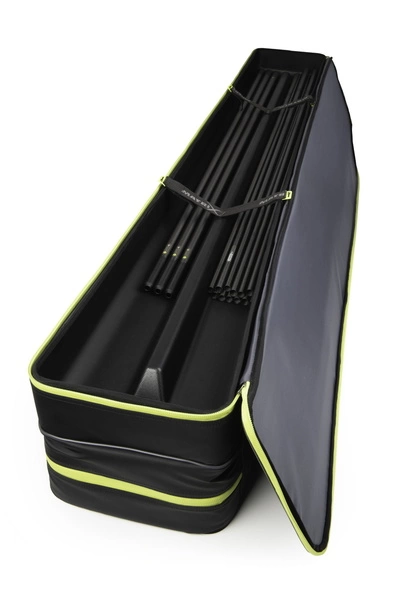 De Matrix Horizon X Multi Pole Holdall is speciaal ontworpen voor de veeleisende moderne wedstrijdvisser. Het is een compleet systeem met ruimte voor het veilig bewaren en vervoeren van de vaste stok, reservedelen, top kits, schepnetstelen en een brolly. Het voorvak is gemaakt van een gegoten ABS insert zodat je je topkits en reservedelen veilig kwijt kan. Er kunnen wel 25 top kits in bewaard worden! De holdall is gemaakt van een speciaal PVA gecoat materiaal dat extreem waterdicht en bijkomend nog eens heel erg duurzaam is ook. De bovenkant is afgewerkt met twee neopreen handgrepen en een extra gevoerde schouderriem, zodat je alles gemakkelijk en comfortabel mee kan dragen naar je stek. Alles wat je maar nodig kan hebben tijdens een wedstrijd past in de Horizon X Multi Pole Holdall van Matrix!