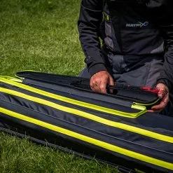 De Matrix Horizon X Rigid Rod Holdall is gemaakt voor de moderne feeder-/wedstrijdvisser. De holdall is opgebouwd uit twee grote hoofdcompartimenten met gevoerde verdelers en bevestigingspunten zodat je je hengels veilig en los van elkaar kan opbergen. Beide compartimenten zijn zo ruim dat je per compartiment 2 volledig opgetuigde hengels kwijt kan. Tevens heeft de holdall een groot buitenvak voor het bewaren van de langere items zoals schepnetstelen, een brolly, stormpoles etc.. Er zit ook een speciaal gegoten EVA vak in voor het netjes opslaan van extra feeder tips. Het geheel is voorzien van een waterdichte PVC coat en een case van stijf PE board wat bescherming biedt aan je hengels tijdens transport. Tot slot is de holdall afgewerkt met twee neopreen handgrepen en een extra gevoerde schouderriem voor een perfect draagcomfort. Met de Matrix Horizon X Rigid Rod Holdall ben je altijd voorbereid op pad!