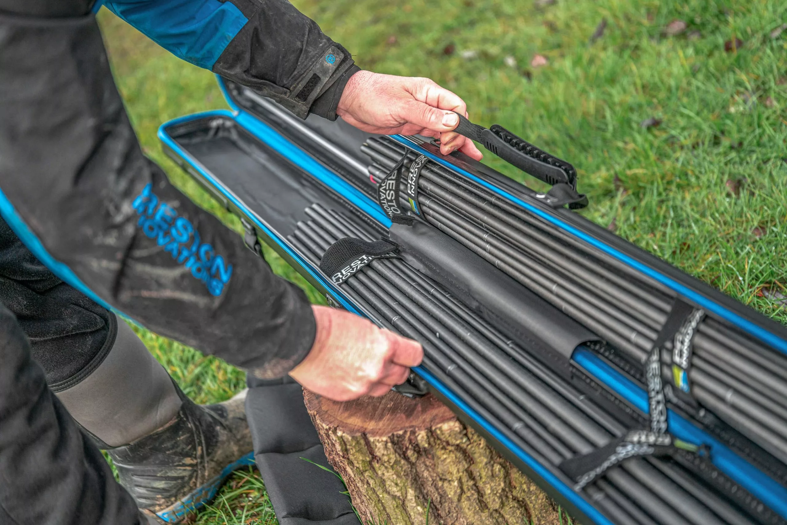 Stijlvolle branding, duurzame extra grote ritsen en een luxe gevoerde draagriem maken dit een musthave voor elke witvisser!