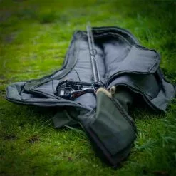 ‘Hold all’ is niet overdreven in het geval van dit Saber Supra Rod Sleeve foedraal van Saber. Geschikt voor het transporteren van drie hengels met big pit-molens, schepnet en steel, rod pods, enz. En een extern zakje en riemen om paraplu of brolly onder te brengen. Het foedraal heeft een ritssluiting over de volledige lengte van boven naar beneden en is aan de binnenzijde in z’n geheel gevoerd.
